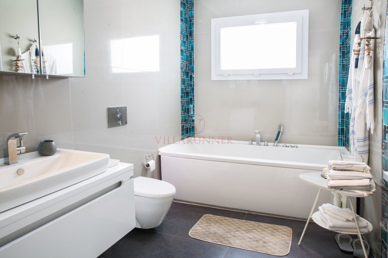 Villada geniş bir salon, tam donanımlı mutfak, konforlu yatak odaları ve modern banyolar yer almaktadır. Salon kısmında şık oturma grubu, büyük ekran televizyon, klima ve yüksek hızlı internet erişimi bulunur.