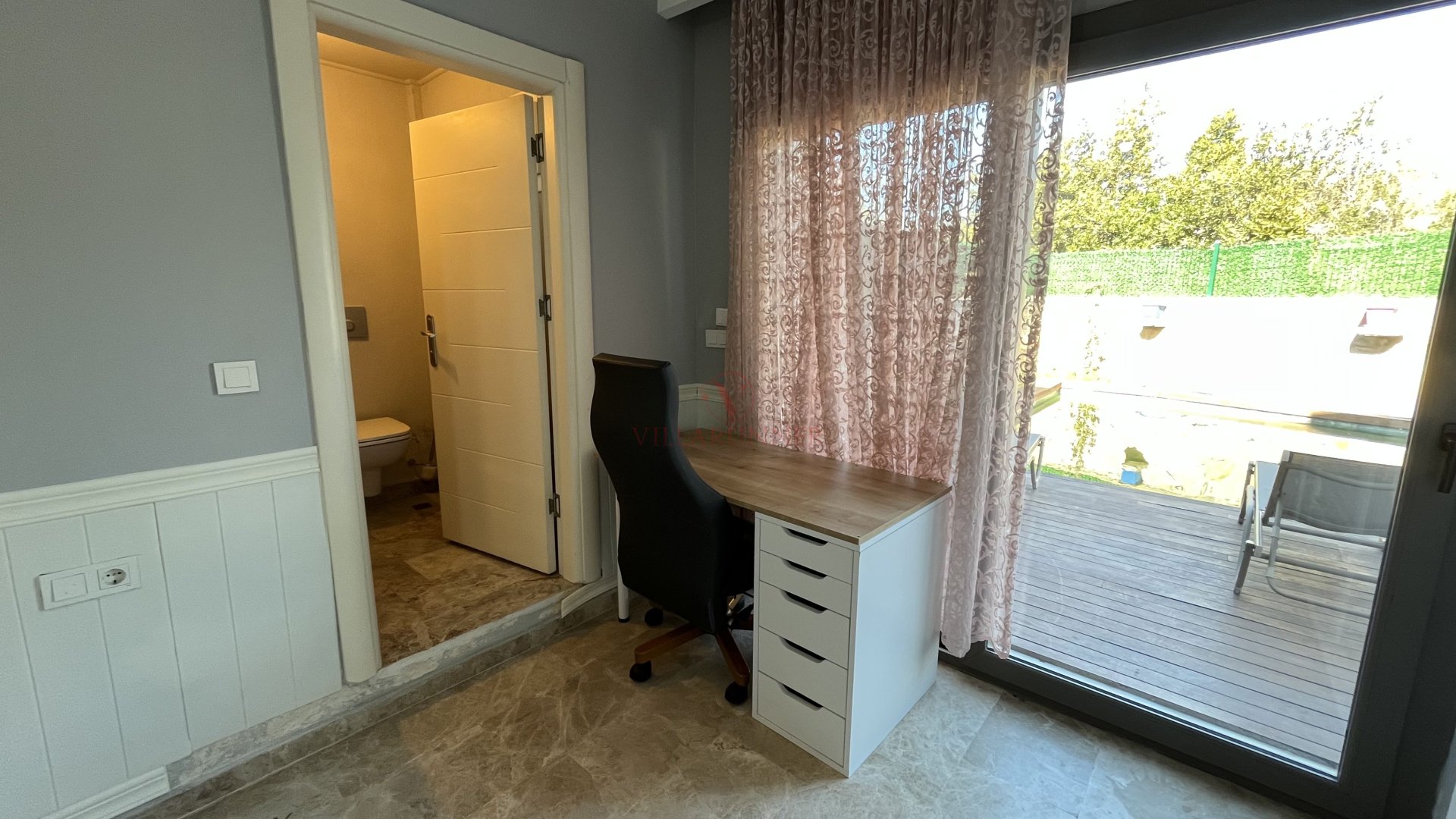 The villa consists of 4 bedrooms and 1 living room, with an accommodation capacity of up to 8 guests. Inside the villa, there is a spacious living area, a fully equipped kitchen, comfortable bedrooms, and functional bathrooms.
