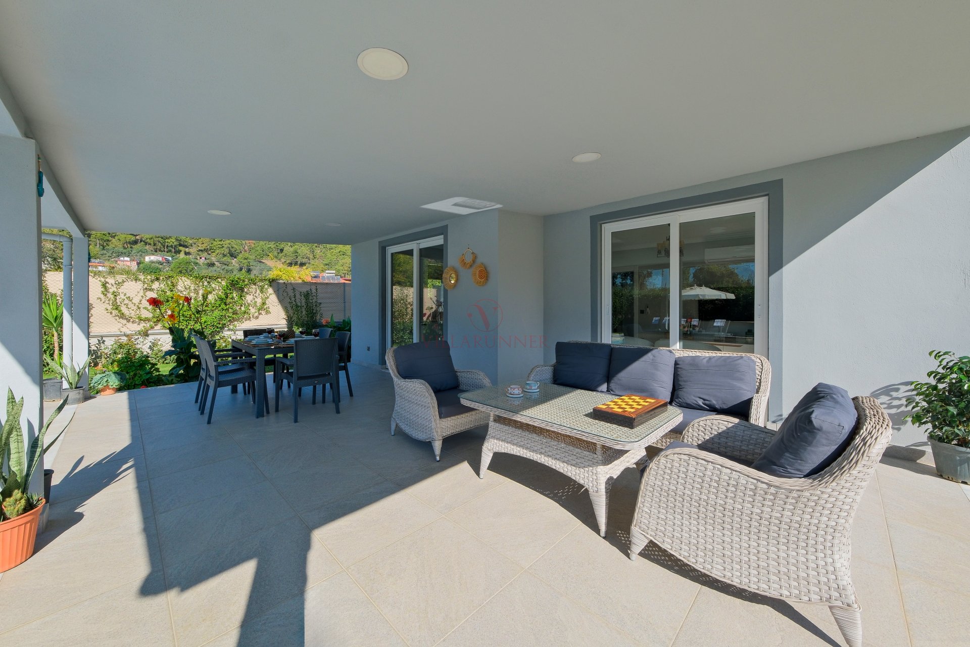 Outdoors, guests can enjoy a private swimming pool, sunbathing terrace, loungers, garden furniture, and a barbecue area. The spacious garden provides a safe and enjoyable environment for both families with children and groups of friends.