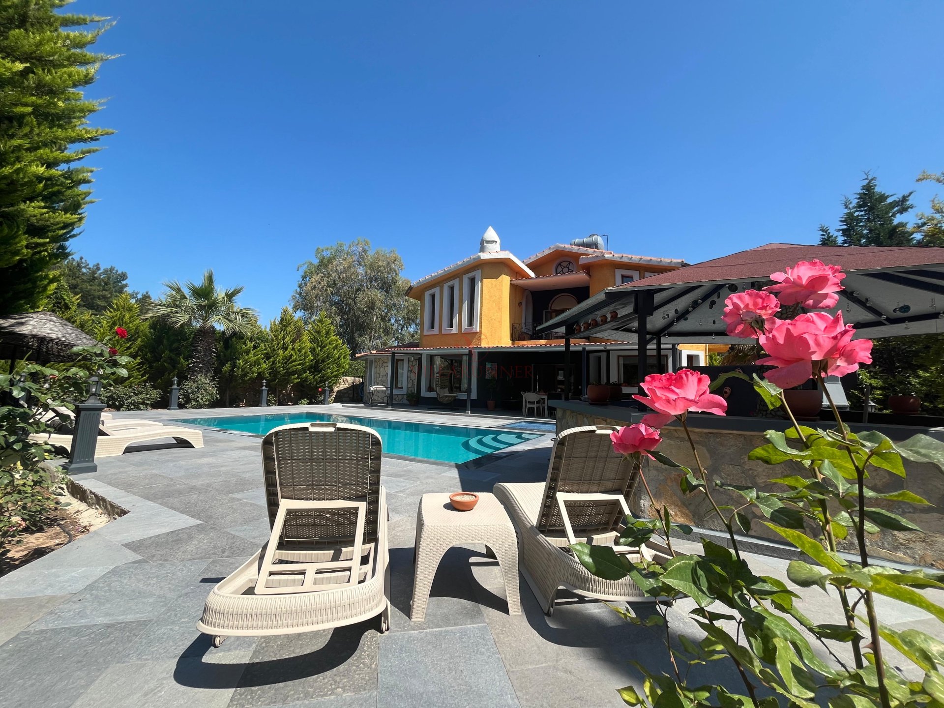 Balayı veya romantik bir kaçamak yapmak isteyen çiftler için de villa, doğa içindeki konumu ve mahremiyet sunan yapısıyla huzurlu bir atmosfer sağlar. Gün boyunca havuz keyfi yapabilir, çam ormanlarının serin havasında dinlenebilirsiniz.