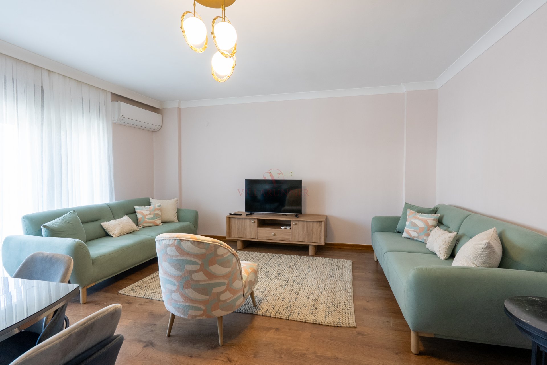 Daire içerisinde geniş bir salon, ayrı mutfak, iki yatak odası ve banyo bulunmaktadır. Ferah ve kullanışlı tasarımı sayesinde hem aileler hem de arkadaş grupları için konforlu bir konaklama sunar.