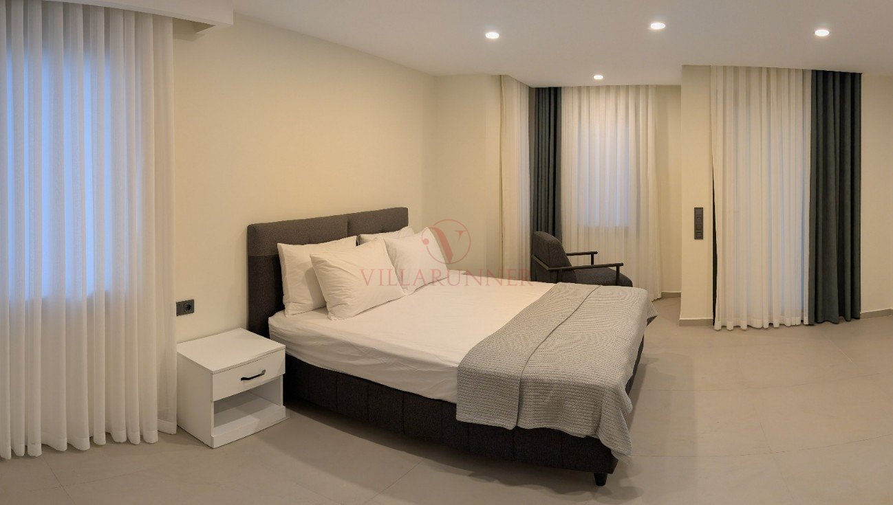 Modern taş mimarisi, geniş yaşam alanı, özel havuzu ve yeşil bahçesiyle misafirlerine konforlu, estetik ve doğayla bütünleşmiş bir tatil sunar.