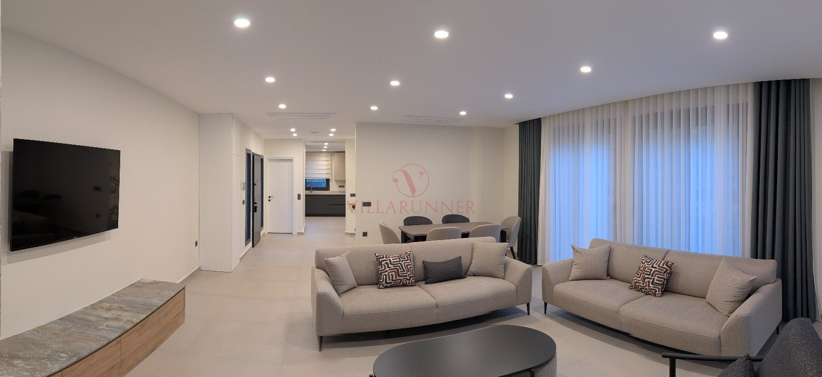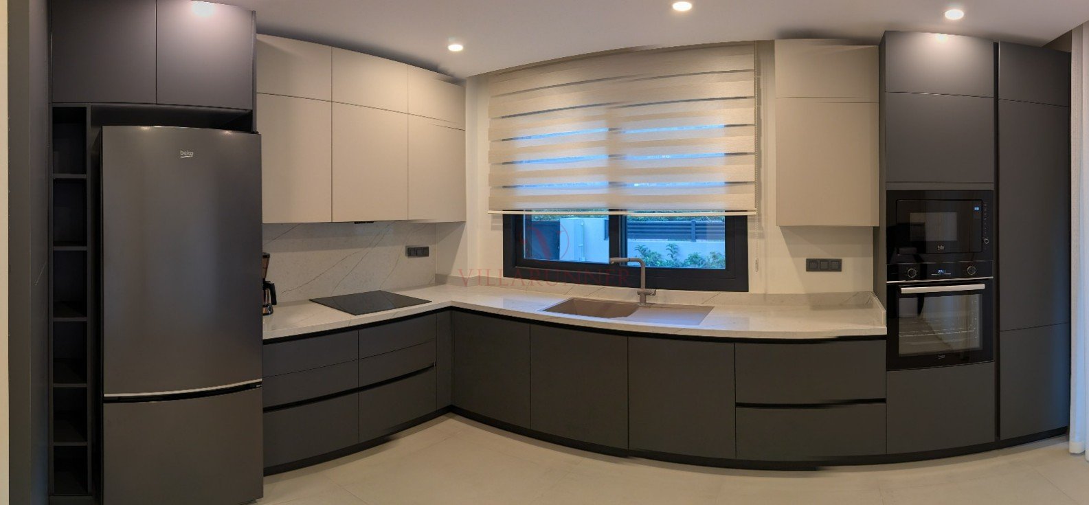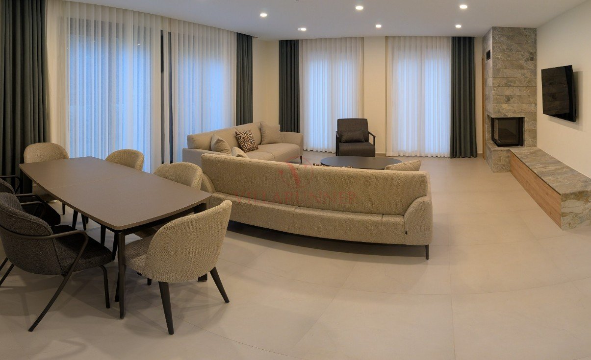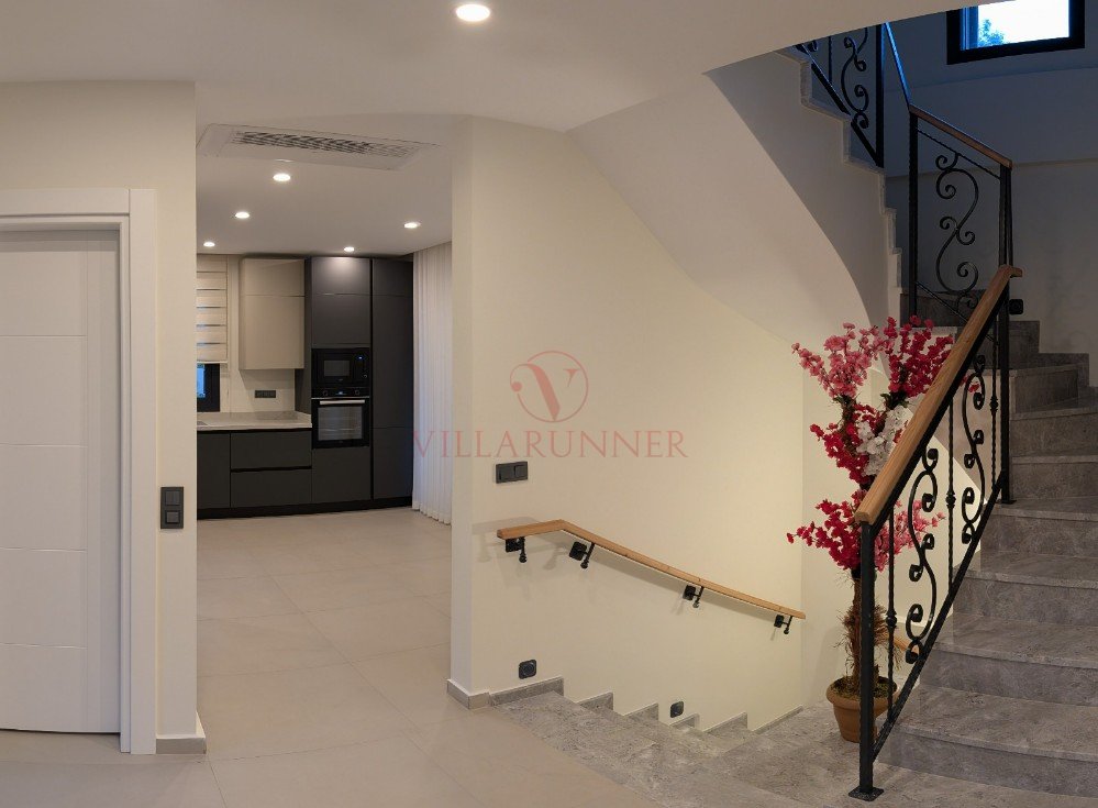 Villada geniş bir salon, tam donanımlı mutfak, klimalı yatak odaları ve modern banyolar yer alır.