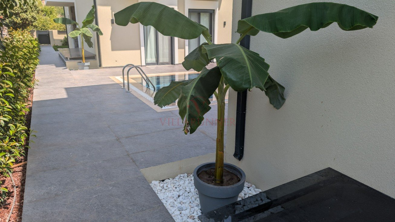 Dış mekânda özel yüzme havuzu, şezlong alanı, bahçe oturma grubu ve barbekü alanı bulunur.