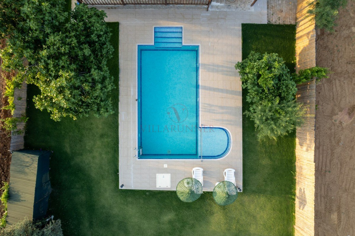 Villanın çevresi doğal ağaçlarla çevrilidir, bu sayede tam mahremiyet ve sessiz bir atmosfer sunar.