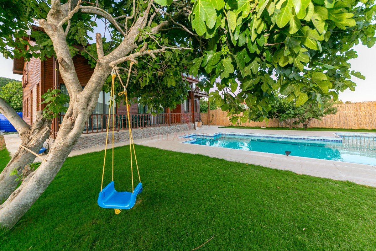 Dış mekânda özel yüzme havuzu, şezlong alanı, geniş bahçe, oturma grubu ve barbekü alanı yer alır.