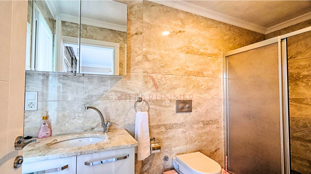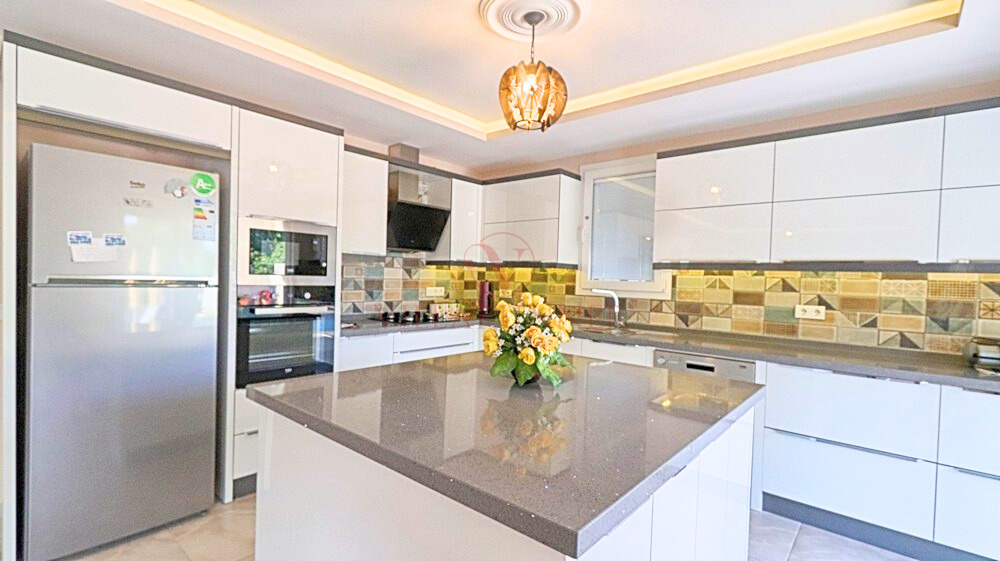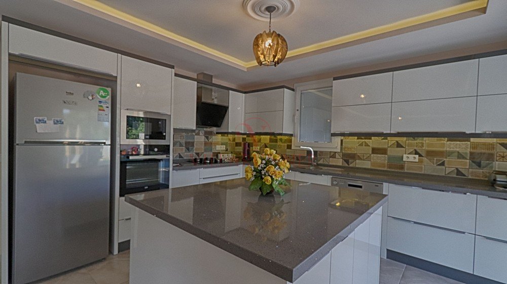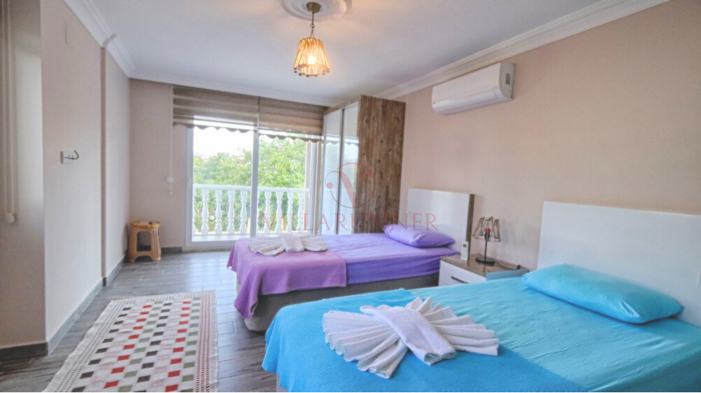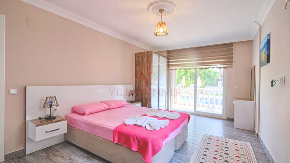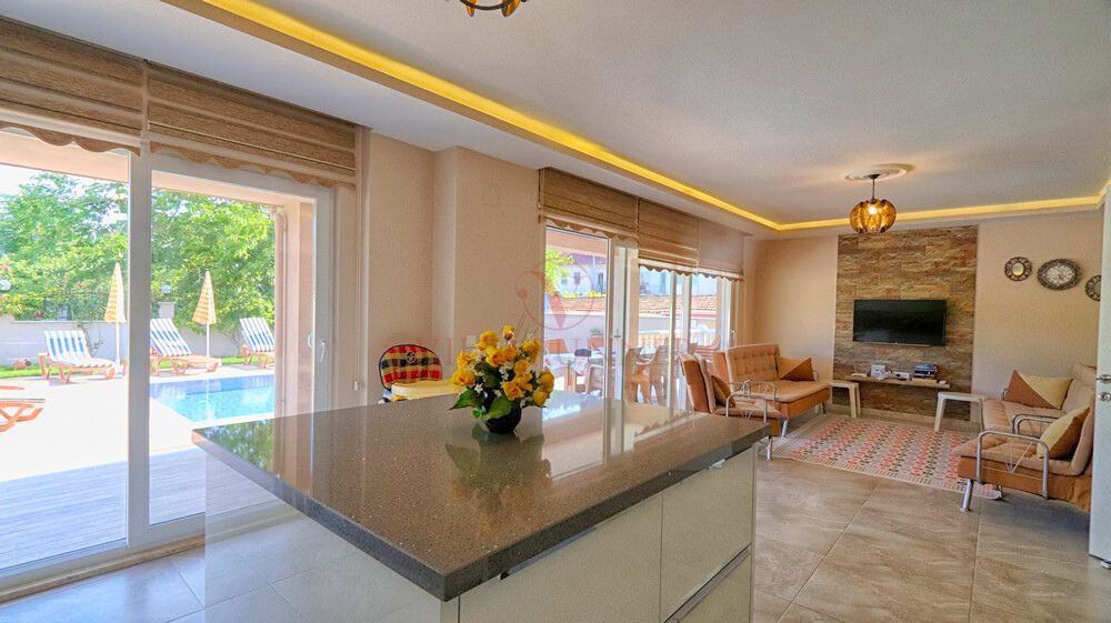 Villada ferah bir salon, tam donanımlı mutfak, klimalı yatak odaları ve modern banyolar yer alır.